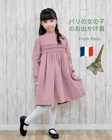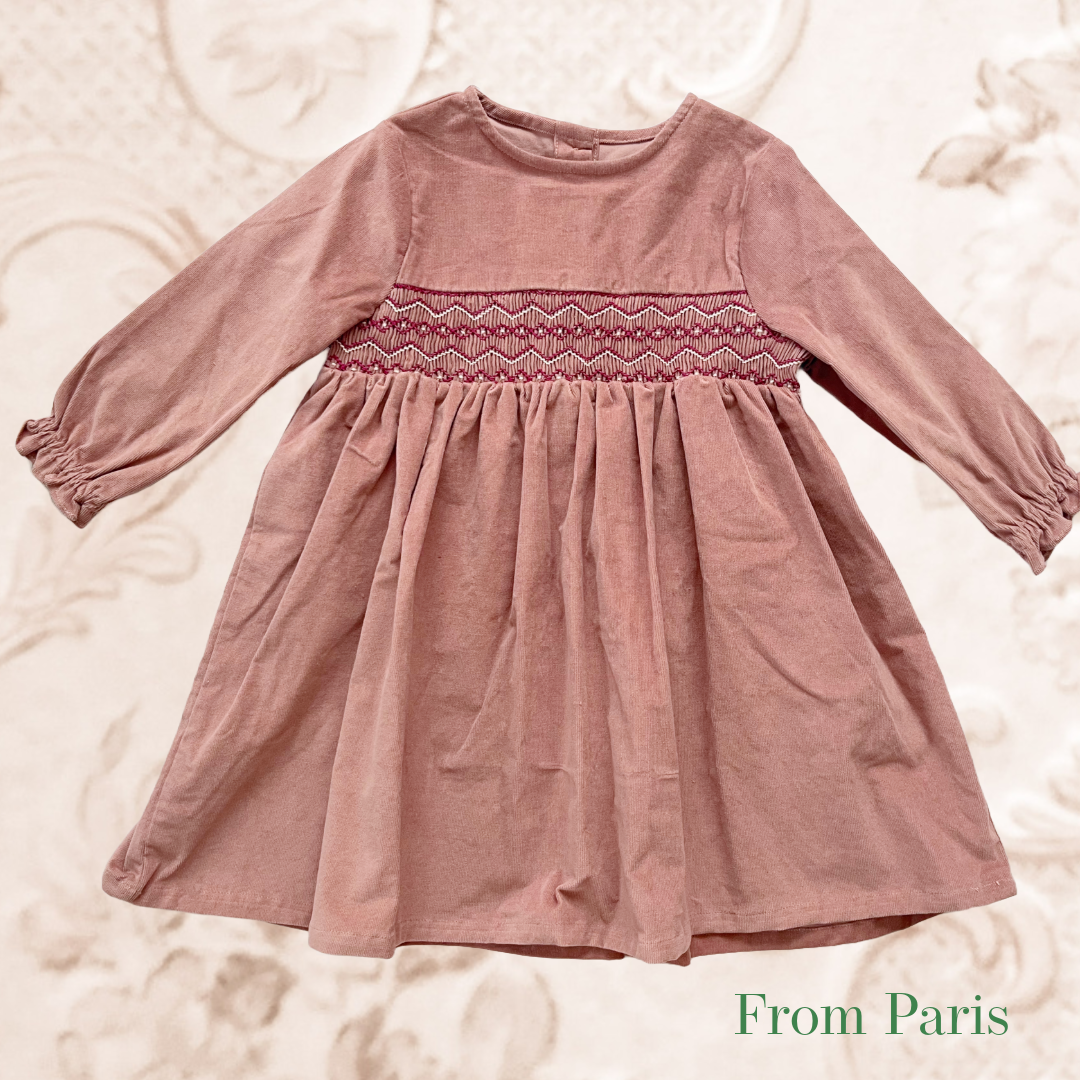 20%OFF フランス MariePuce コーデュロイ ローズヴィンテージ スモッキングワンピース JOSEPHINE ドレス