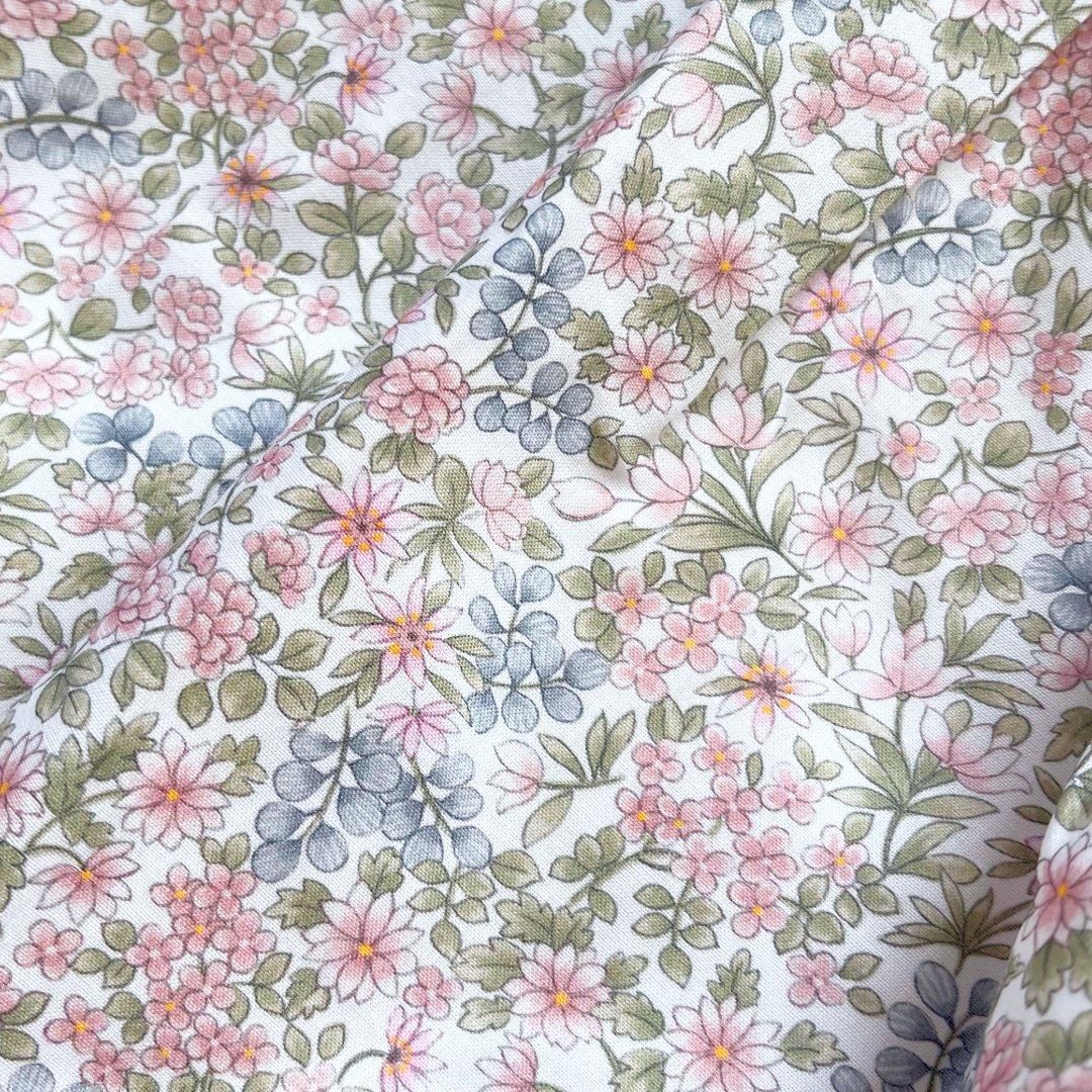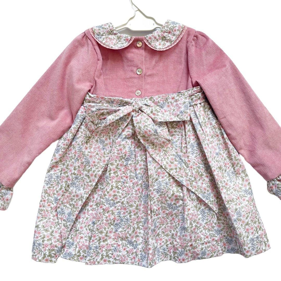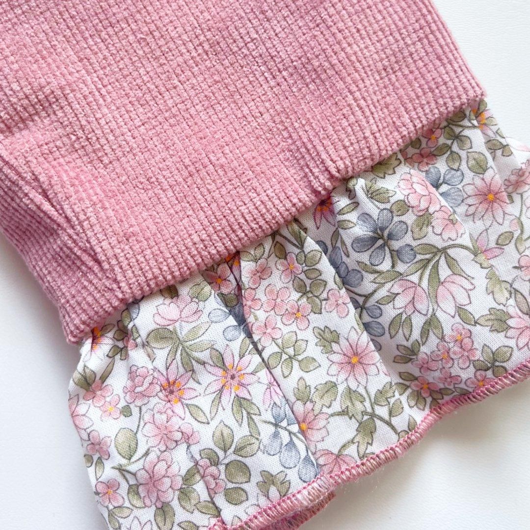 ピンクのお花柄のフェミニンな生地にコーデュロイのドッキングがかわいい