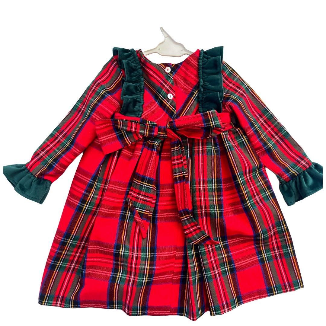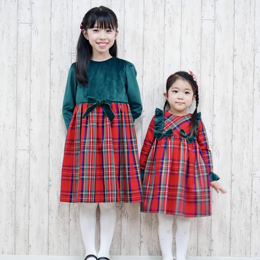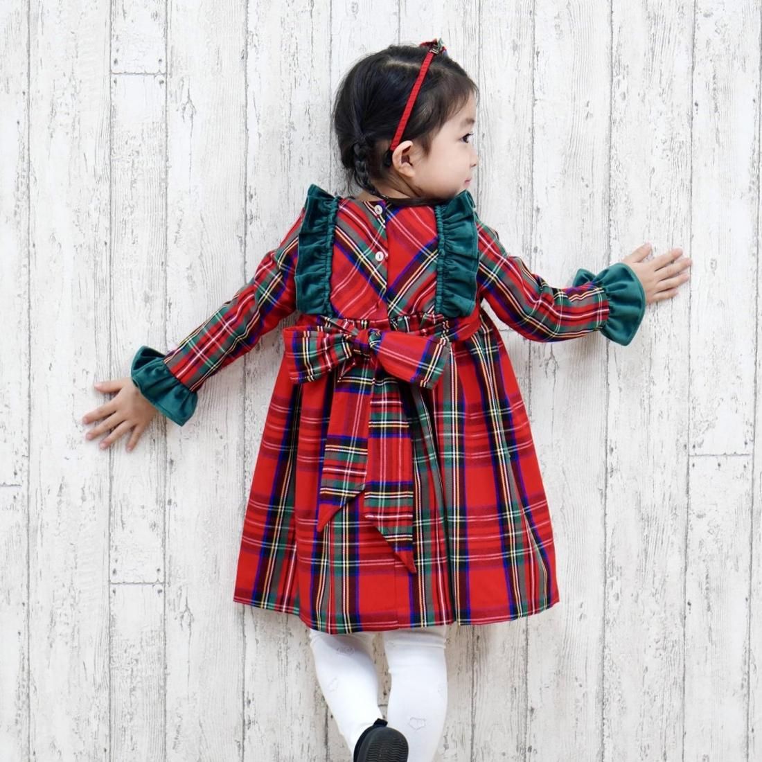 クリスマスやホリデイシーズンが レッドタータン×ベルベットフリル スペシャルオケージョンドレス