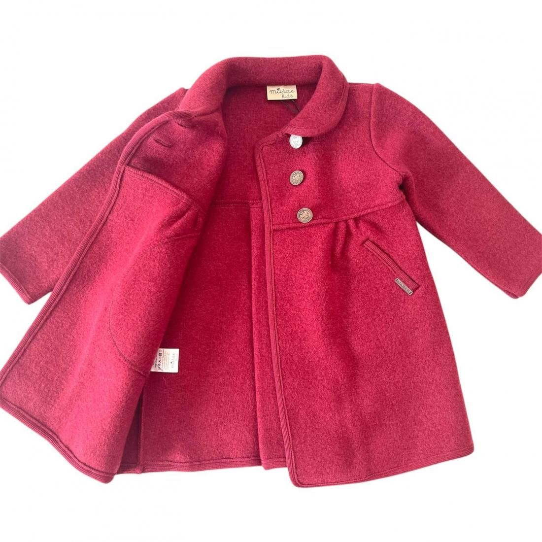 スペイン Marae Kids マラエキッズ ふんわりクラシックコート♪ガーネット♪ポケット付 メリノウール100%